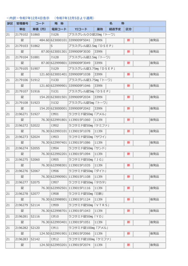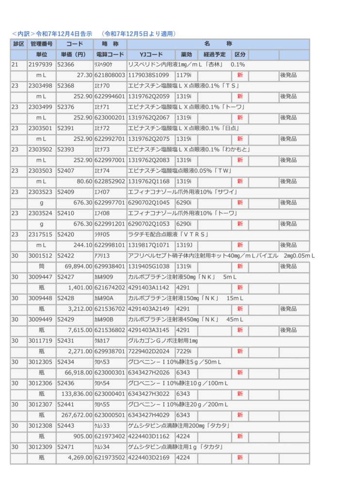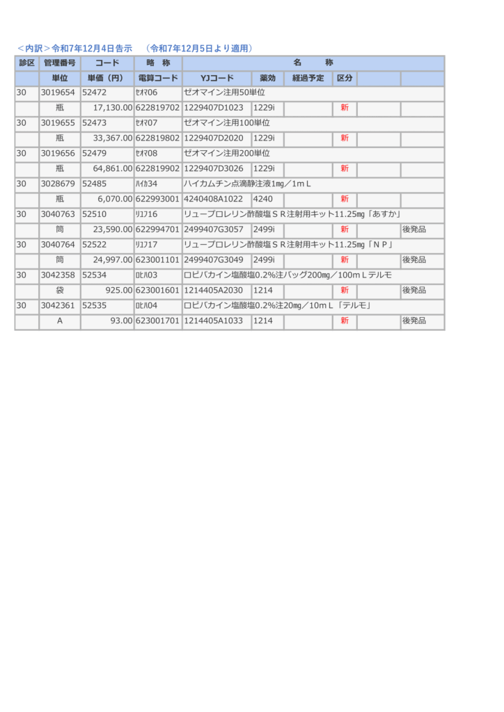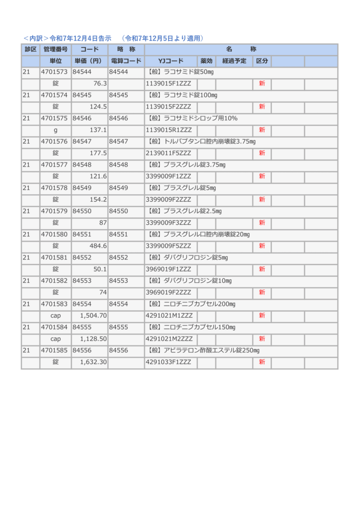 令和7年12月4日告示 追補(令和7年12月5日より適用)
